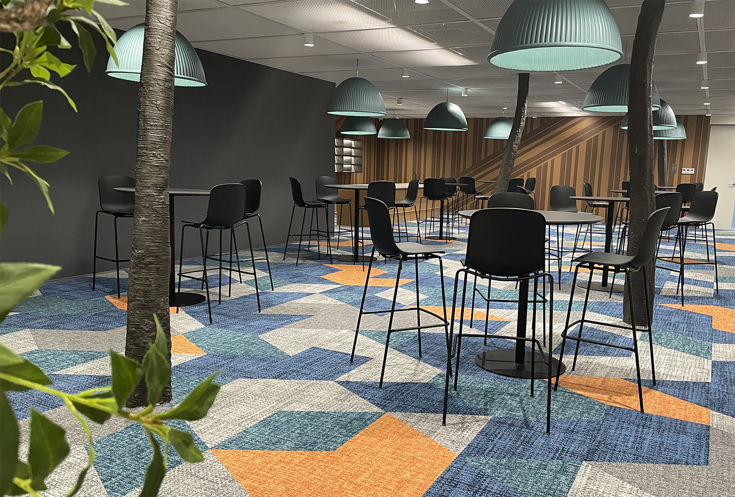 The graphic design inspiration stems from Collage Art, a movement rooted in early 20th-century Cubism, where artists like Picasso shattered monolithic perspectives by fragmenting and reassembling materials to construct new visual narratives. Today, Collage Art is re-interpreted in contemporary interior design through a diverse combination of colors, shapes, and material textures, injecting a dynamic rhythm and artistic tension into the office environment.