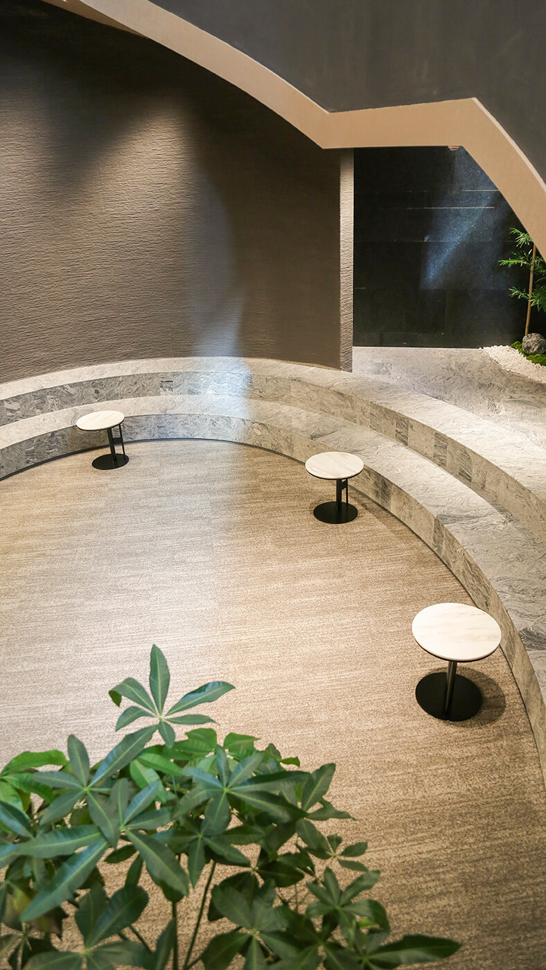 The entrance lobby features the elegantly textured T895 Denim, creating a calm and welcoming first impression. The central square of the hot spring area and entertainment center on the first floor employs the richly textured T601 Torrent. At the same time, the second-floor lounge opts for the visually unified T665 Granite, establishing a cohesive ambiance. The selected carpets offer excellent dimensional stability, durability, and low TVOC emissions, adapting to the temperature and humidity variations of the hot springs environment while ensuring safety and fresh air quality.